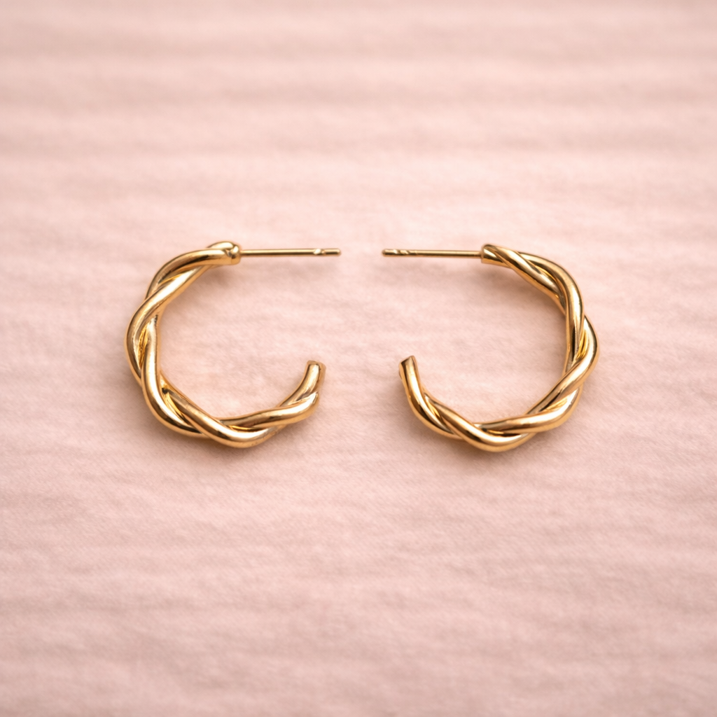Elegant and effortlessly stylish, these gold twisted hoop earrings feature a beautifully interwoven design that adds subtle texture and dimension. The sleek curves and polished finish create a modern yet timeless look, making them perfect for both everyday wear and elevated styling. A versatile addition to any jewelry collection.